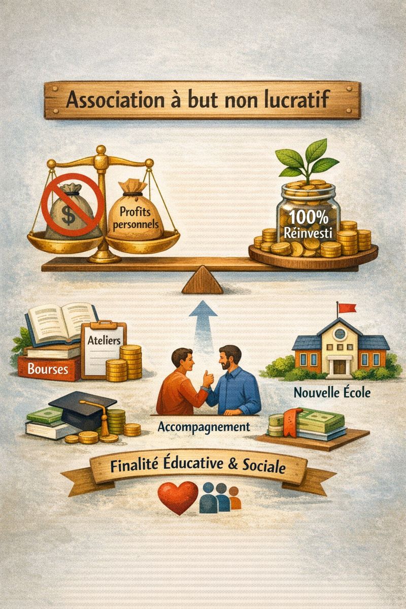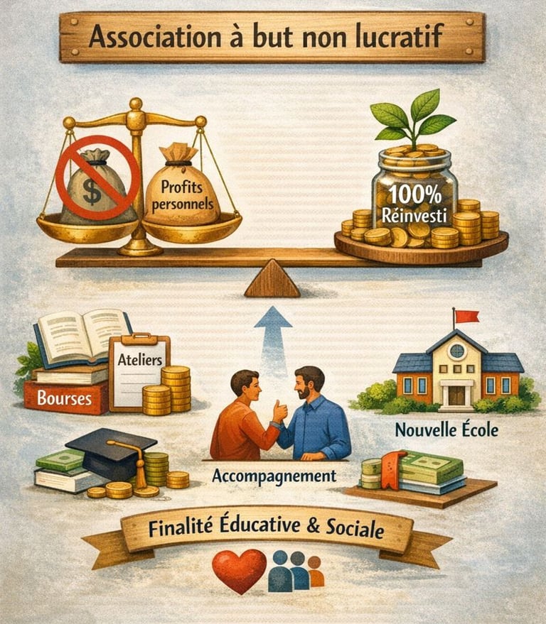 TOUTES Les ressources (cotisations, ventes, dons) sont réinvesties dans nos actions : outils pédagogiques, ateliers et accompagnements, accessibilité financière, rémunération de partenaires et projets éducatifs.