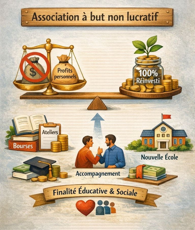 En bref, cela signifie que la finalité première est éducative et sociale, pas financière.